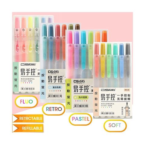 Stylo marqueur surligneur rétractable 24-Fluor, rechargeable, couleurs pastel rétro douces pour l'école, le bureau et l'emballage de l'ensemble de papeterie chaude