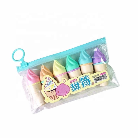 Mini surligneur de style coréen en plastique 6 couleurs en forme de crème glacée avec pointe biseautée pour fournitures scolaires et cadeaux pour enfants