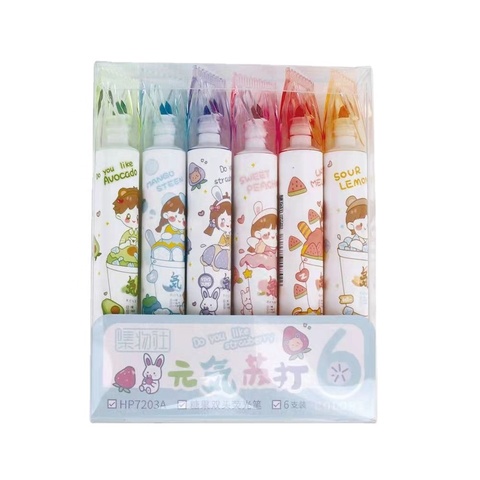 6 pièces/ensemble mignon couleur bonbon surligneur stylo papeterie Double tête marqueur Fluorescent stylo SC ensemble 6 couleurs pointe de cristal SC1029 ZHE