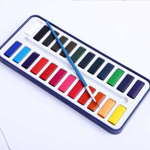 Juego de pintura de acuarela sólida de 24 colores con caja de hierro incluye pincel para pintura de Arte sobre papel lienzo vidrio