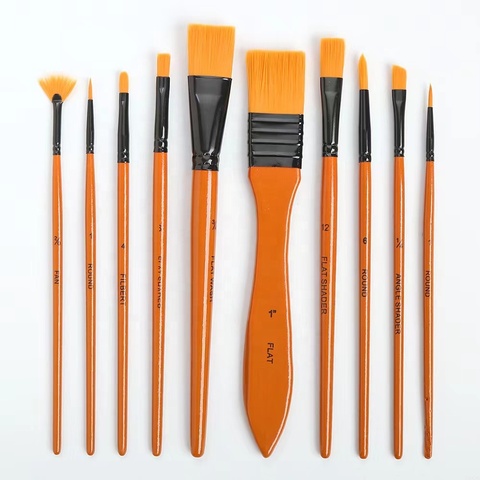 Juego de 10 pinceles de pintura acrílica al óleo de acuarela con punta redonda, pelo de nailon con mango de madera para suministros de arte